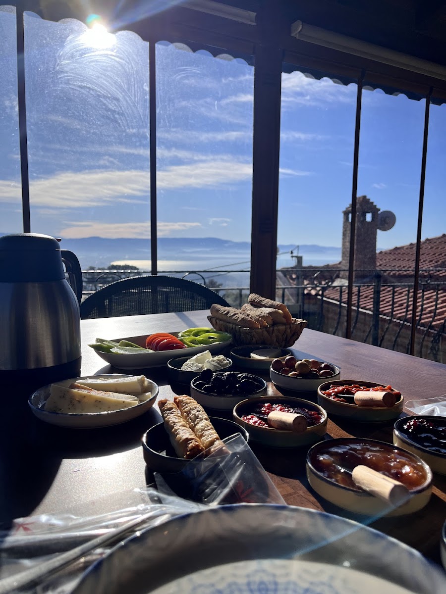 Seyir Teras Kafe in Güre is a relaxed spot where the essence of village life quietly blends with a comforting culinary experience. Located on a hillside with a wide view of the Körfez, this family-run café-restaurant offers a peaceful retreat from busier coastal areas nearby. Its strengths are clear in the unpretentious, home-cooked style brunch and breakfast options, especially the locally favored mantı and richly spiced kavurma.